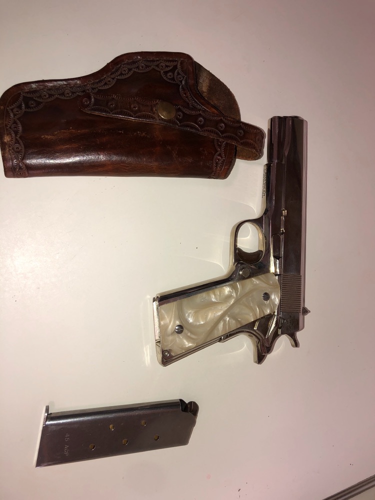 Comes with mother of pearl grips. leather holster, original box, and whatever ammunition I have.