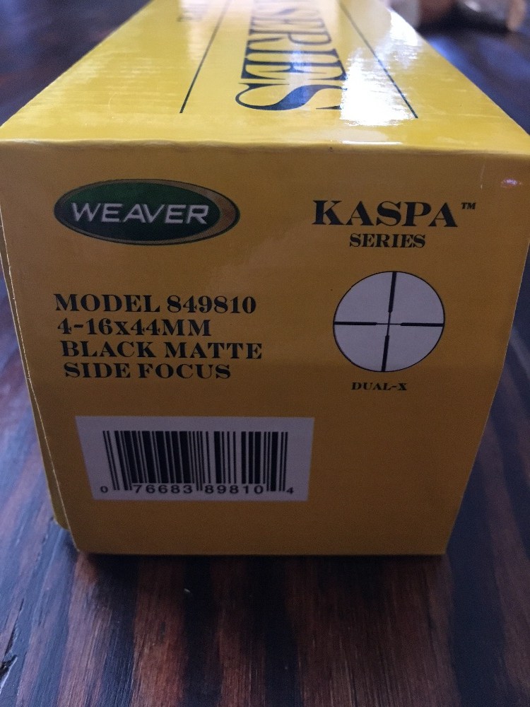 Weaver Kaspa Series 4-16X44 scope. Great clarity and has side focus adjust. Barely used. Great condition. $100 OBO.